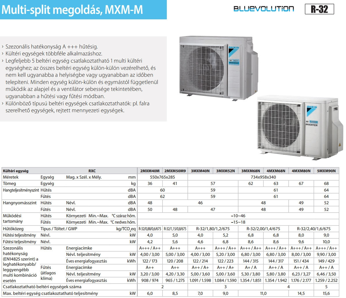 A Daikin 5MXM90A8 Multi klíma kültéri egység (max. 5 beltéri egységhez) fontos tulajdonságai:
