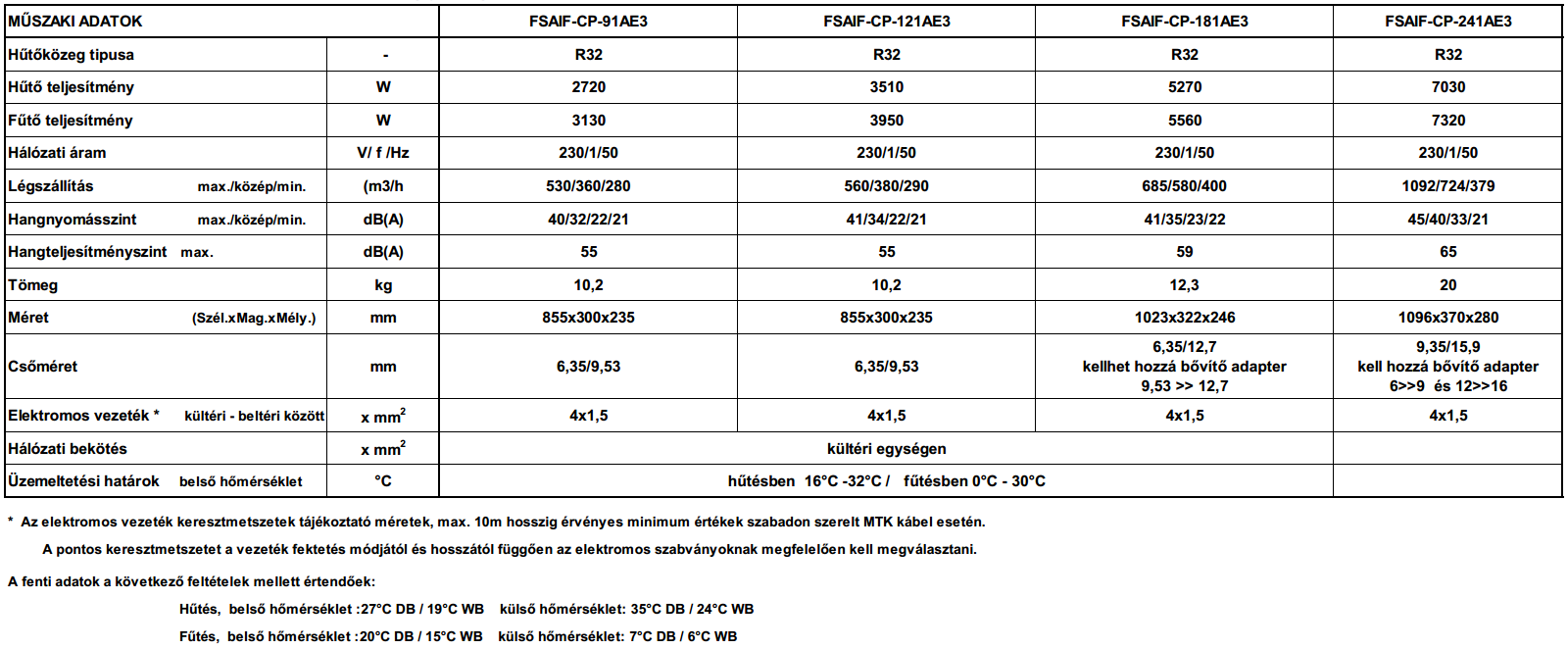 • Hűtő teljesítmény : 4.6 (0.65 - 5.2) kW