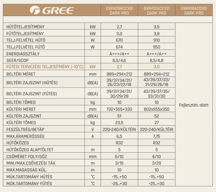 Ön éppen véleményezi: Gree GWH09ACCXB Dark Pro Inverteres Split klíma
