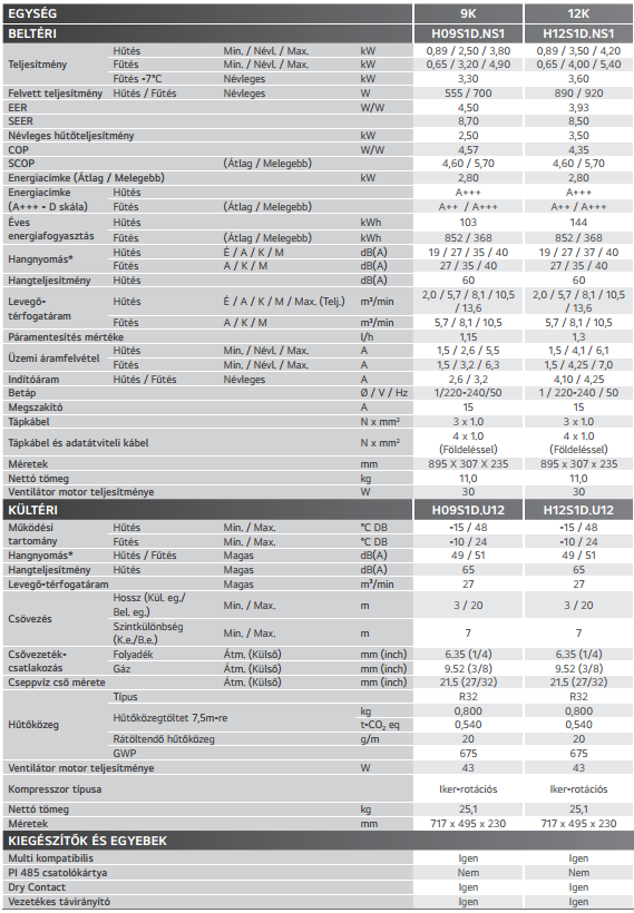 - Hűtő teljesítmény : 3,5 kW